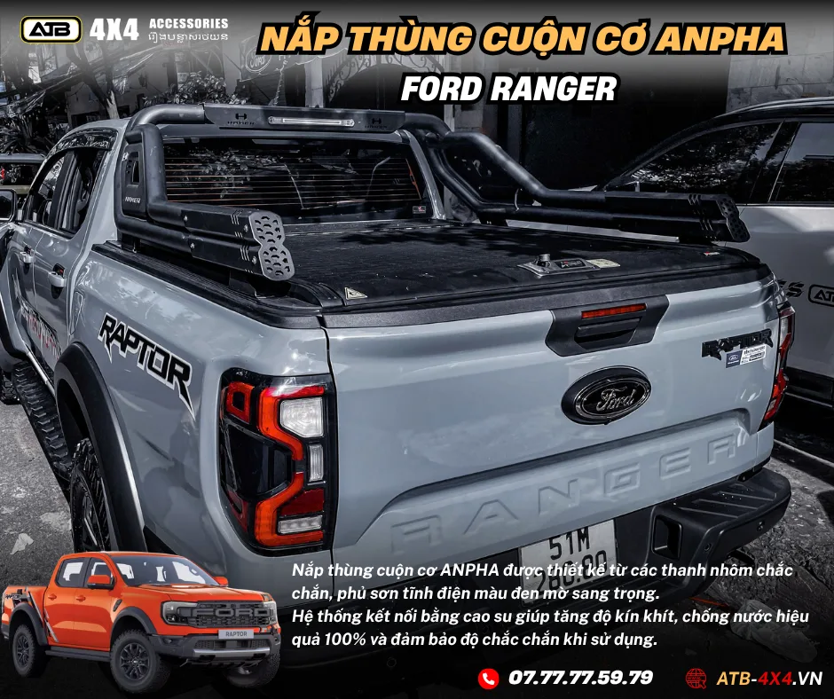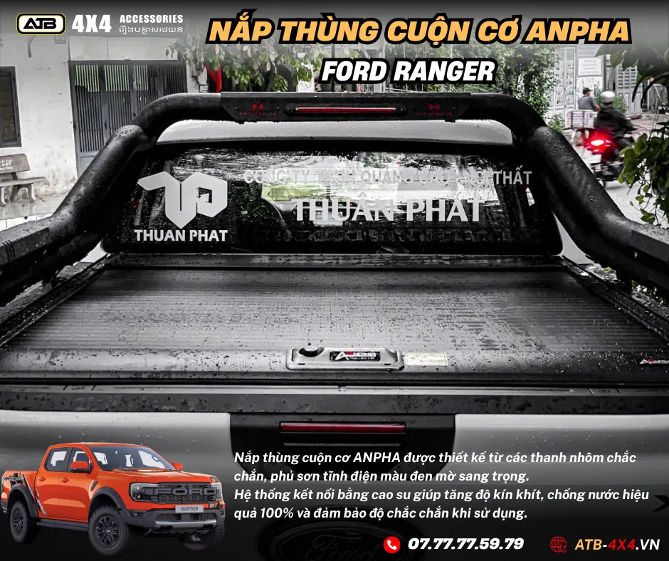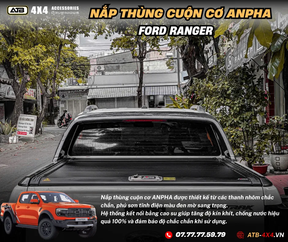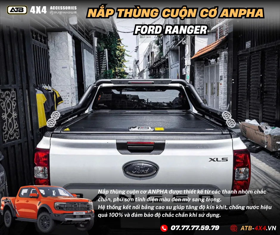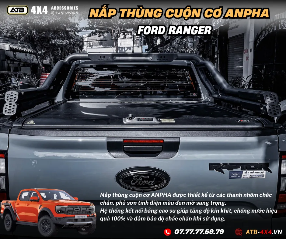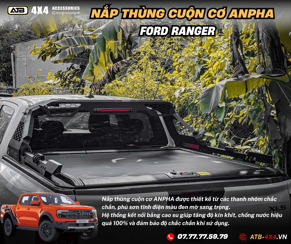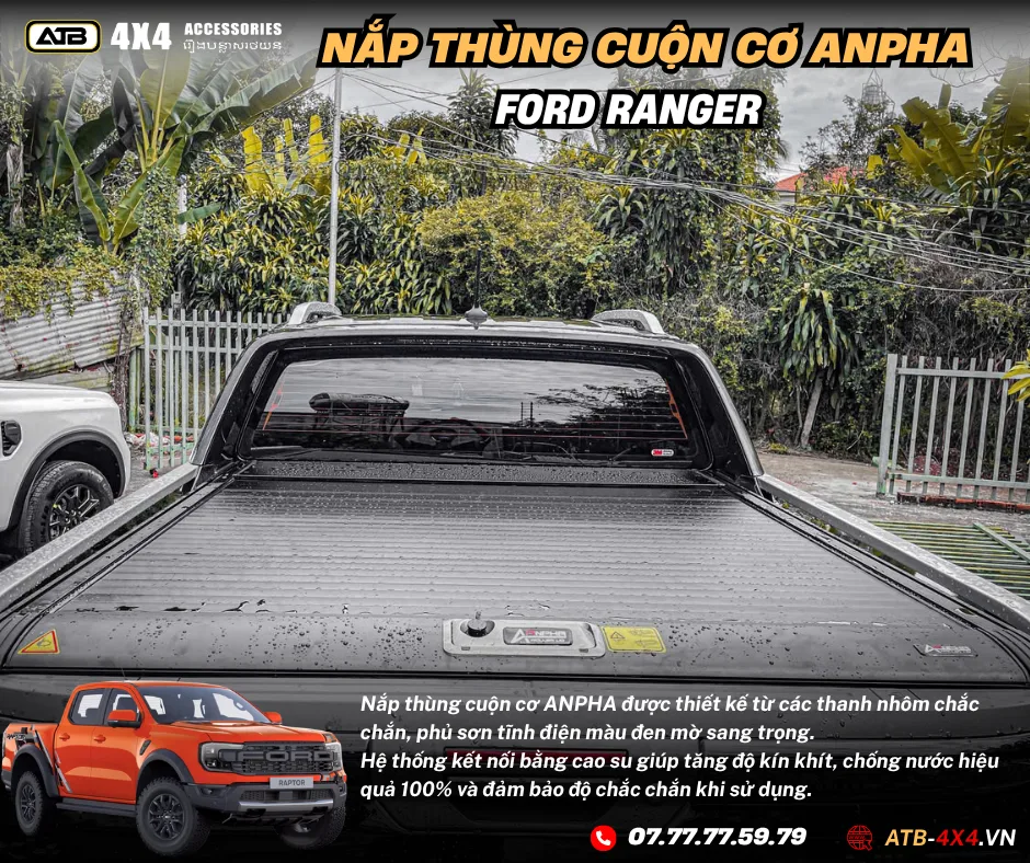 NẮP THÙNG CUỘN CƠ ANPHA Ford Ranger Xls, Xlt, Wild Track, Raptor 2012-2025