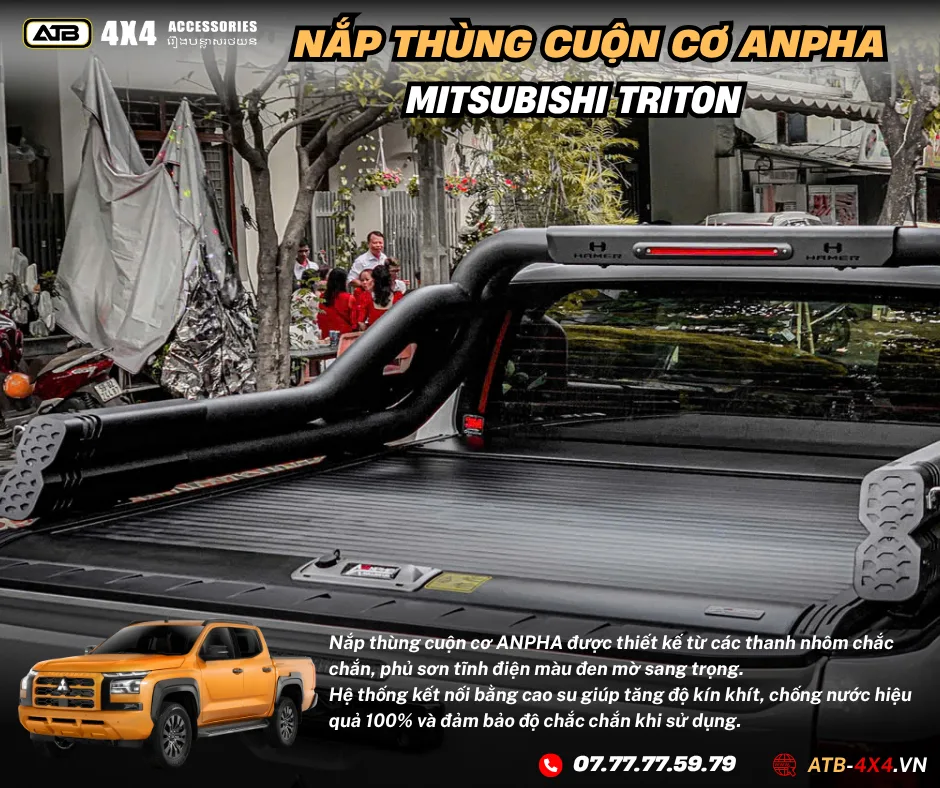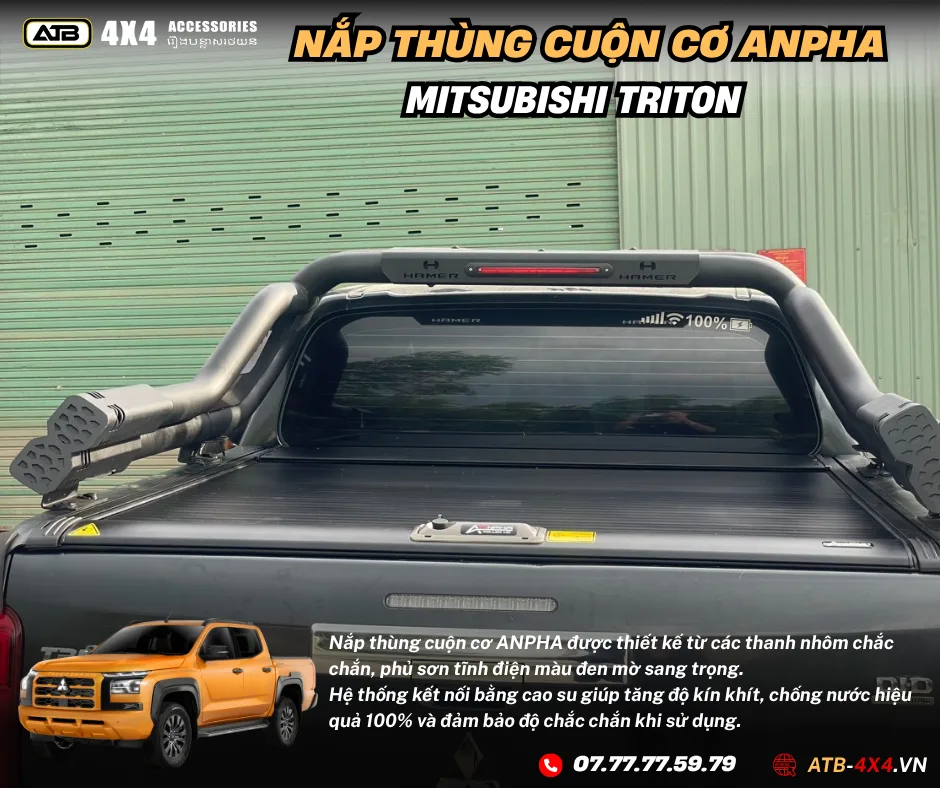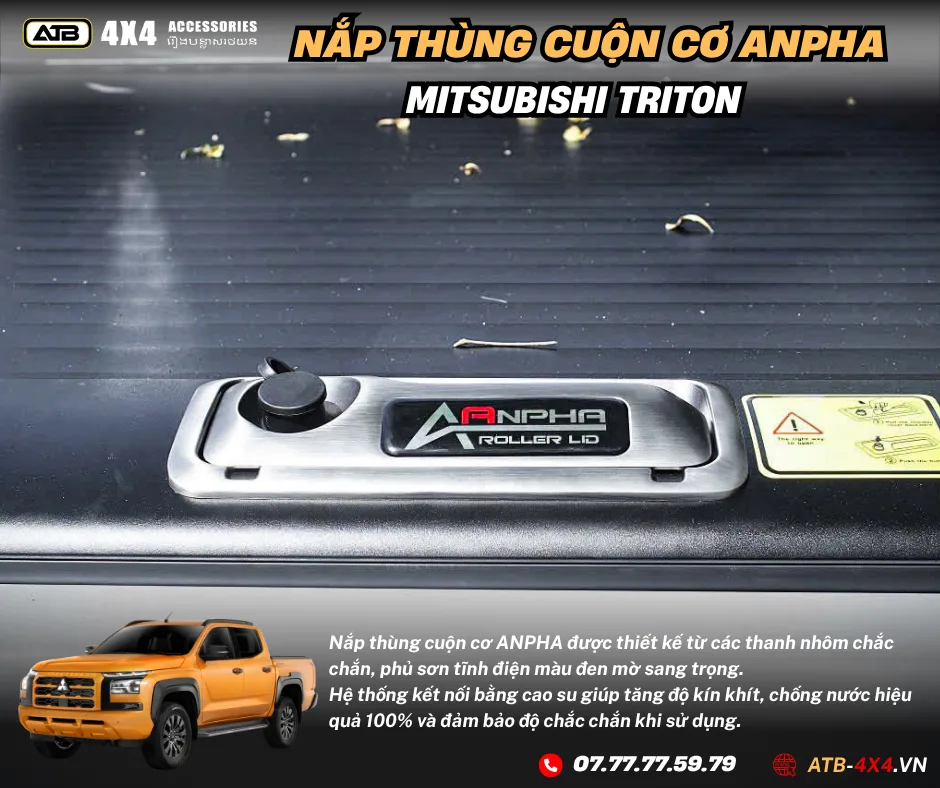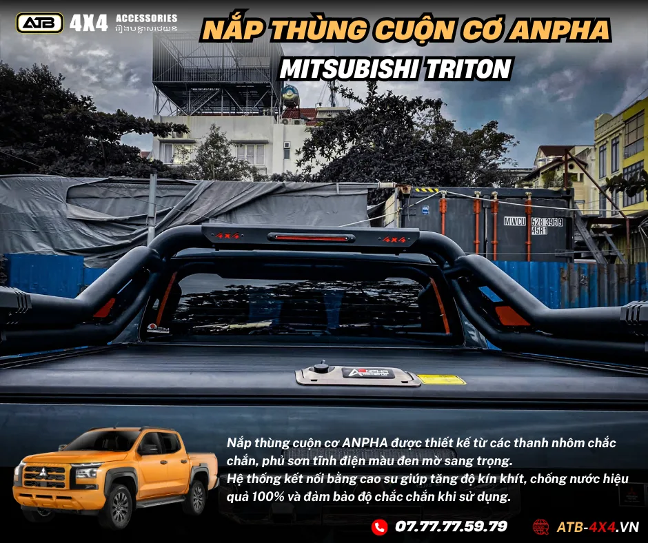 NẮP THÙNG CUỘN CƠ ANPHA Mitsubisi Triton là một giải pháp tiện ích và an toàn để nâng cao trải nghiệm sử dụng xe. Thiết kế riêng biệt, tích hợp nhiều tính năng như hệ thống khóa an toàn, và kiểu dáng khí động học, nắp thùng cuộn cơ được làm từ chất liệu cao cấp, lắp đặt dễ dàng mà không can thiệp vào kết cấu thùng xe. Hãy đến ngay với Chuyên Phụ Kiện Bán Tải để trải nghiệm sản phẩm chất lượng, được bảo hành và hỗ trợ tận tình!