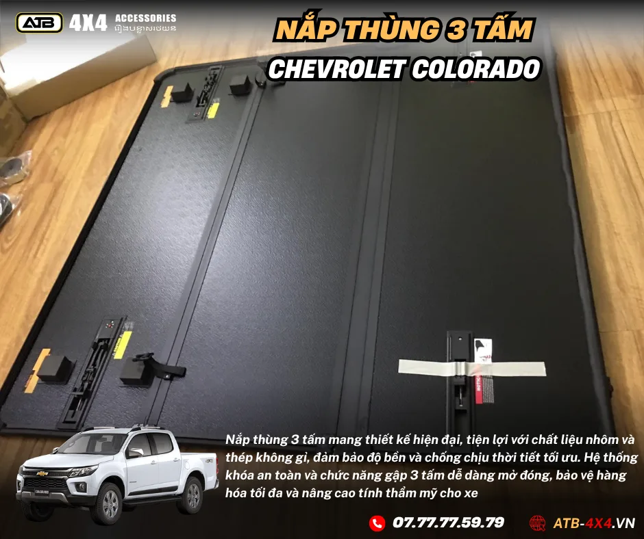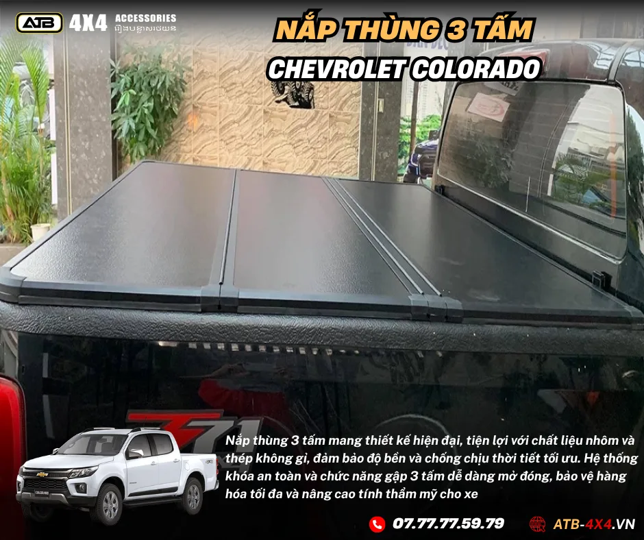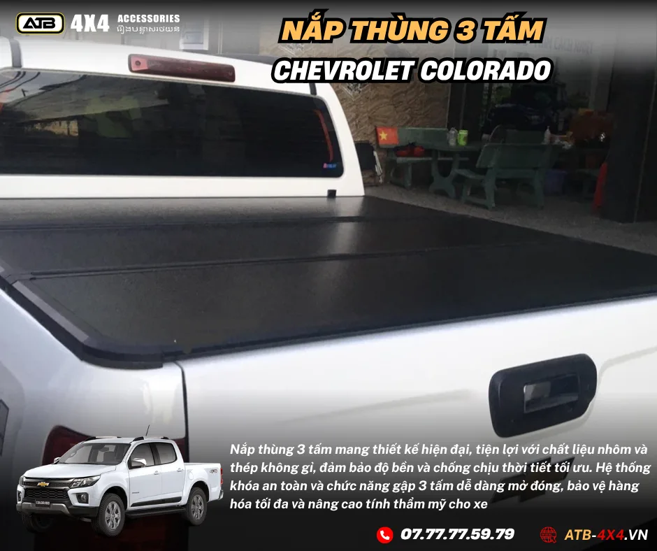 Nắp thùng 3 tấm xe bán tải là một loại nắp được sử dụng trên thùng của xe bán tải. Điều đặc biệt về nắp này là nó được tạo thành từ 3 tấm bản lề: một mặt đứng phía trước, một mặt đứng phía sau và một mặt nắp đậy ở trên, có thể mở lên và gập lại một cách linh hoạt. Nhờ vào cơ chế này, người sử dụng có thể dễ dàng truy cập vào phần trong của thùng xe mà không cần phải mở toàn bộ nắp. Việc đóng mở nắp thùng 3 tấm thường được thực hiện thông qua việc lật hoặc trải các tấm nắp này ra.